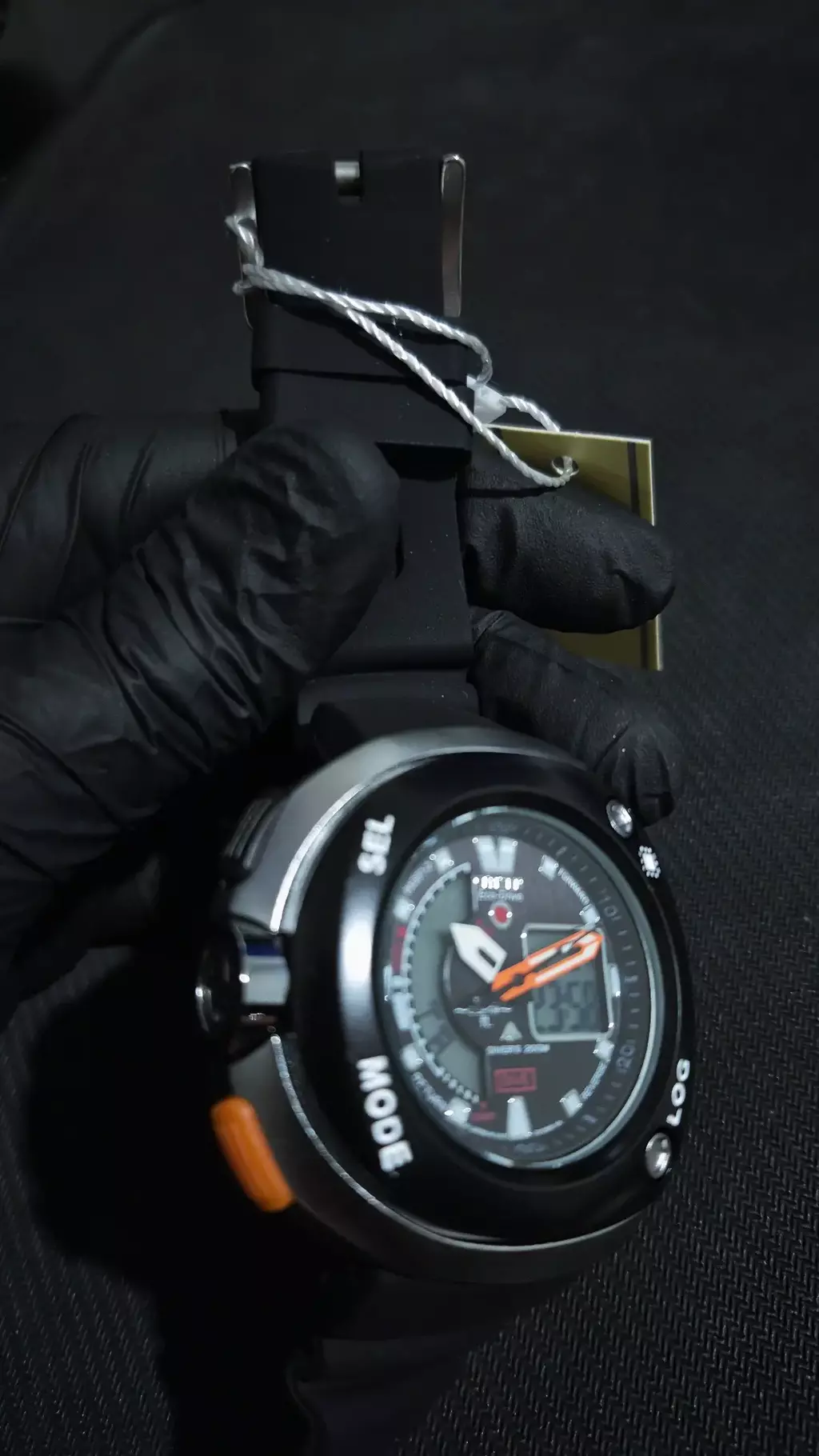 O mostrador analógico-digital oferece leitura clara e funcional, com indicadores de modo, profundidade máxima e tempo de mergulho. A combinação perfeita de precisão, durabilidade e estilo profissional para aventuras subaquáticas ou uso no dia a dia.
